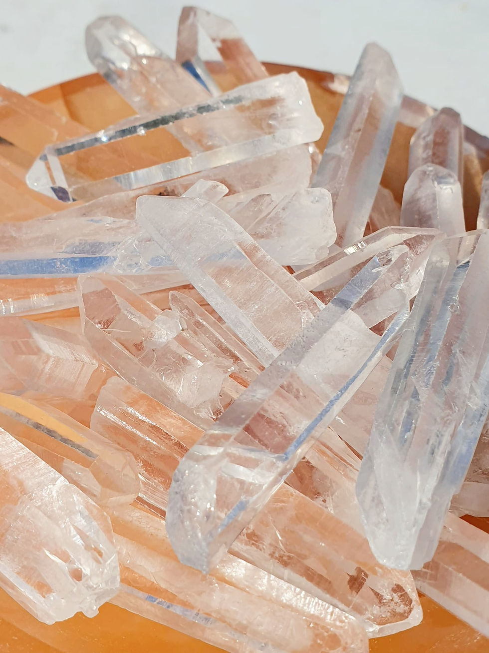 Clear Quartz Known as the 'Master Healer', amplifies the energy of others crystals and intentions of the user. Its capacity to emit negative ions is believed to enhance mental clarity, emotional stability and quality of sleep; thereby contributing to an overall sense of happiness and well-being.